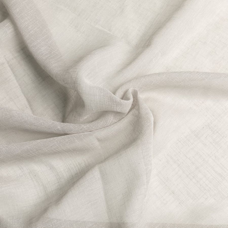 Open geweven vitrage met een natuurlijk ogende linnenlook. De stof is kamerhoog zodat in de confectie geen naden zichtbaar zullen zijn. Aan de onderzijde van de stof is een verzwaringskoord gemaakt, zodat deze prachtig valt en er geen zoom in hoeft.